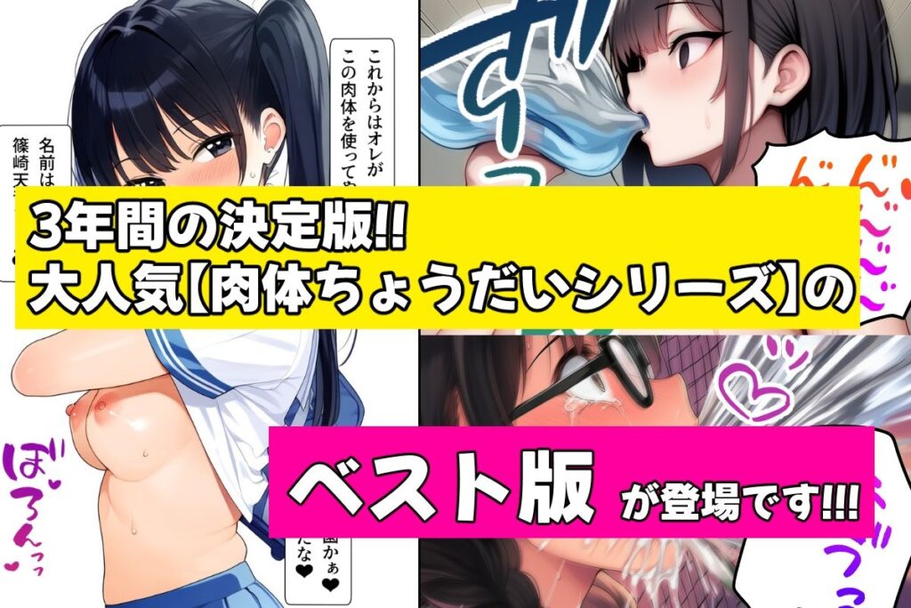 今すぐ読む!(最大99%OFFクーポン)完全版を今すぐ読む!(最大99%OFFクーポン)肉体ちょうだいシリーズ総集編発売日: 2026年4月2日ボリューム: 248 分通常価格: 2,970円販売価格: 742円ジャンル: 制服、学園もの、巨乳、ベスト・総集編、憑依、逆転無し、... -
