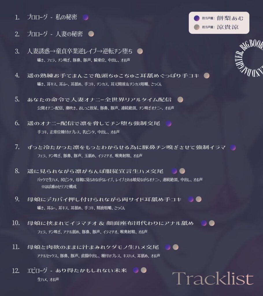 今すぐ読む!(最大99%OFFクーポン)完全版を今すぐ読む!(最大99%OFFクーポン)恋愛フーゾクdiary 保育イメクラ嬢なのはの甘やかしま●こ【KU100ハイレゾ】発売日: 2025年12月24日ボリューム: 6本 (約119分)+α販売価格: 1,320円ジャンル: 中出し、アナル、... -